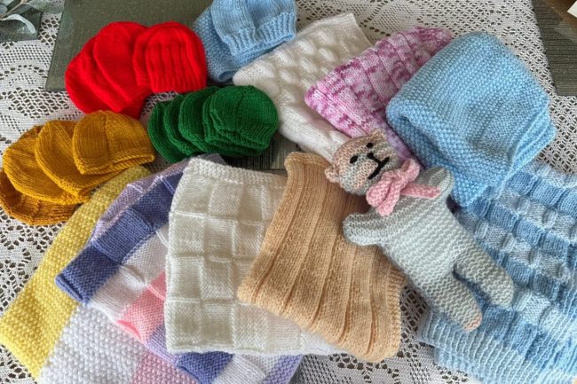 Over the last six months, we’ve been sending a small parcel of knitted baby items including cardigans, bonnets, booties, mittens, blankets and teddies to families with newborns who have reached out to CCSP for an Essential Grant. These knitted items had been donated in the past by a number of parishes, most recently from Blandford Forum’s Knit and Natter group, but our supply was running low.
